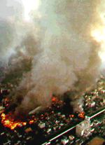余震还在继续,从图中能看到巨大的烟柱从神户的建筑物上空升起。