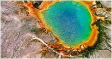 左图:老忠实间歇泉是世界上最著名的间歇泉。它有规律地喷发至少已有200年了,始终给人以深刻的印象。 黄石公园是世界上最古老的国家公园(建于1872年)和美国最大的国家公园。它大部分位于怀俄明州。在这片落基山脉之中的火山高原上分布着许多高山、湖泊和森林、另外,它还有着黑悬崖、数以千计的间歇泉和温泉等吸引人的景观。 右图:黄石公园中奇妙的彩色温泉。“间歇泉”来源于冰岛语“盖济尔”,意为“喷井”或“狂怒者”。地表下深处是炽热的岩石。当它们把喷出口或喷管内的水加热到沸点时,蒸汽和水集聚起来直到它们从顶部喷出。间歇泉的喷管空了以后,又逐渐被水充满,整个过程重新开始。 老忠实间歇泉有规律地喷发至少已有200年,每小时一次喷射出约4.55万升水,高度达30-45米,每持续时间5分钟。 黄石公园的许多动物中最危险的是灰熊。由于到公园的游客很多,灰熊已不再害怕人。当它们与野营者或步行者遭遇时,有可能发生意外,甚至死亡。 |