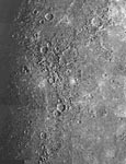 水星 (Mercury) 水星是离太阳最近的行星。它的体积在太阳系中列倒数第二,只比冥王星大些。由于水星就在太阳的眼皮底下,在水星上观察到的太阳大小会超过地球上的两倍。水星白天的表面温度可达摄氏427度,而到了晚上又会骤降至摄氏零下173度。水星有着其特殊的轨道运动,它绕太阳公转一周仅需约88个地球日,而其自转周期却需约59个地球日。二者如此的比例关系使得水星的一昼夜长达176个地球日,水星表面的夜晚将长达几个星期。 由于水星表面温度太高,水星不可能像它的两个近邻金星和地球那样保留一层厚厚的浓密大气,因此无论是白天还是夜晚,水星的天空通常都是一片漆黑。如果仰望天空,你会看到两颗明亮的星星:淡黄色的金星和蓝色的地球。水星大气主要是由从太阳风中俘获的气体组成,密度只有地球大气的12%,主要成份为氦 (42%)、汽化钠(42%)和氧(15%)。水星表面的岩石只反射它们所接收阳光的8%,这使得它成为太阳系中最黑暗的行星之一。 水星只在黎明或白天出现在天空,因此在地球上观测水星较为困难。直到20世纪70年代中期“水手”号任务的实施这种情况才有所改变。无人探测器“水手10号”发回的照片揭示了水星过去的历史。水星表面有许多很深的陨石坑,其中一个和美国得克萨斯州一样大。这表明水星也曾接连不断地遭到陨石的轰击。但照片也显示水星表面有广阔的平原。科学家们推测水星曾经是液态的,后来逐渐冷却凝固成了岩石。较小的陨石只在水星表面留下一个个陨石坑,而较大的则击破了水星外壳,使涌出的熔岩流在平原上到处流淌。水星表面纵横交错地分布着长长的、高低起伏的悬崖。这些构造最高可达3048米。这些峭壁可能是由于水星冷却时直径缩小形成的。水星核的主要成份是铁和镍,水星的幔和壳主要由硅酸盐组成。在太阳系所有行星中,水星所含铁的比例是最高的。 水星表面不存在液态水。但1991年科学家们在其北极发现了一个亮斑,这个亮斑可能是由于水星表面或贮存在地下的冰反射阳光造成的。虽然水星表面温度非常高,但在水星北极的一些陨石坑内,可能由于终年不见阳光而使温度长年底于-161摄氏度以下,这足以使来自水星内部或宇宙空间的水以冰的形态保存下来。