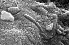 显微镜下火星陨石中不寻常的管状结构,被认为是火星上曾经存在生命的证据 |